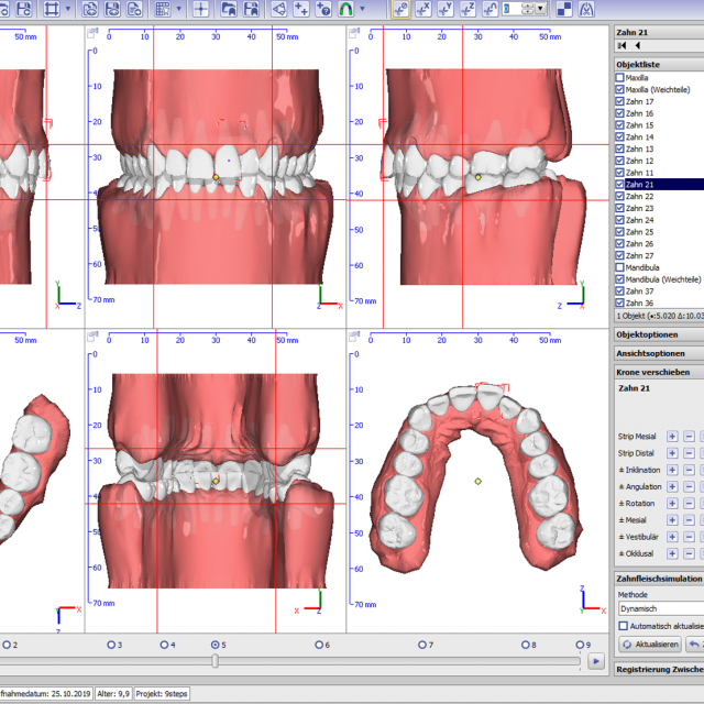 Vor Beginn der Behandlung erstellen wir auf Basis der digitalisierten Abdrücke eine Machbarkeitsanalyse. Diese beinhaltet die vollständige Planung sowie die genaue Angabe der notwendigen Schienen.